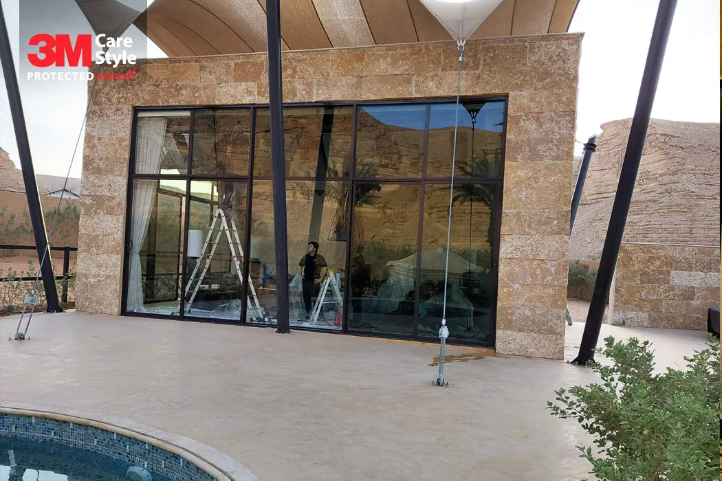 تظليل المباني باستخدام أفلام العزل الحراري الأمريكية المعروفة بجودتها الأصلية مع كير ستايل يظهر في استمرار التظليل وفعاليته المميزة والعزل الحراري الفائق.